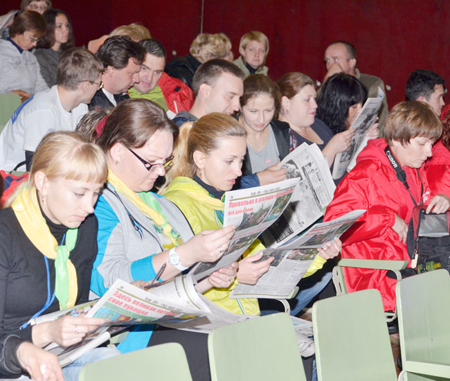 Презентацией спецвыпусков и редакционных проектов, проведенных коллективами редакций в этом году, завершался этот насыщенный профессиональной информацией день. Как внимательно рассматривали, вчитываясь в статьи, газетные полосы газетчики. Острый журналистский взгляд замечал и отмечал все. С интересом слушали и представленные проекты. Естественно, что перед коллегами каждый стремился презентовать проекты с элементами актерского мастерства! Особенно это удалось Любови Ялышевой, ответственному секретарю карасукской районной газеты.