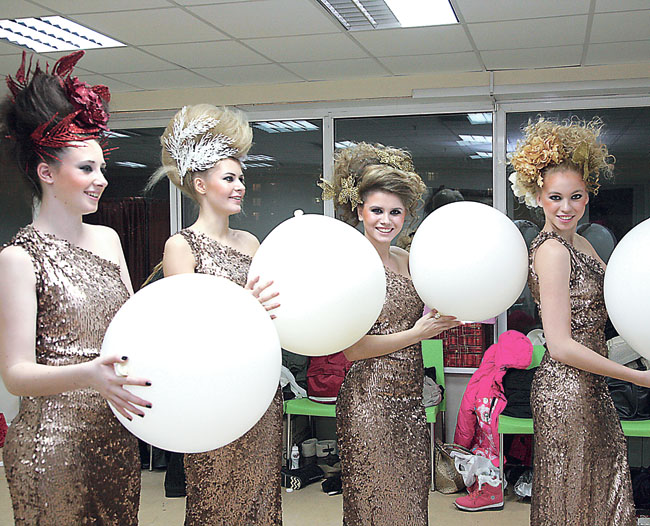 В центре комнаты — запись интервью, справа — спешащие одеться длинноногие красотки в бикини (полуобнаженными телами здесь никого не удивишь). Слева — ряды модной одежды: повседневной, праздничной и суперкреативной. Дизайнеры и их помощники, держащие в руках специальные вертикальные утюжки и окутанные клубами пара, ведут последние приготовления. Длинные шифоновые шлейфы, рискующие быть затоптанными нежданными визитерами, вовремя подхватывает чья-то невидимая рука. В глубине огромной комнаты на лицах и головах красивых и юных рождаются фантазийные высокие прически. Пряди волос крутятся, лохматятся и превращаются в скромные аккуратные домики и роскошные замки…