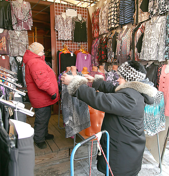— Лишь на гусинобродский рынок может приехать та социально незащищенная бабушка, что стесняется зайти в торговый центр в своем районе, — считает директор ООО «СкинР» Олег Агуреев. Так он сообщил журналистам в пресс-центре ГТРК в конце ноября. Якобы в других районах города и области нет равных по доступности, цене и качеству предложений — поэтому со всего мегаполиса и региона именно на барахолку едут небогатые покупатели. Но если прибавить к покупке стоимость проезда из области в Новосибирск, то становится очевидно — за одними носками ехать не имеет смысла. С точки зрения экономии как минимум.