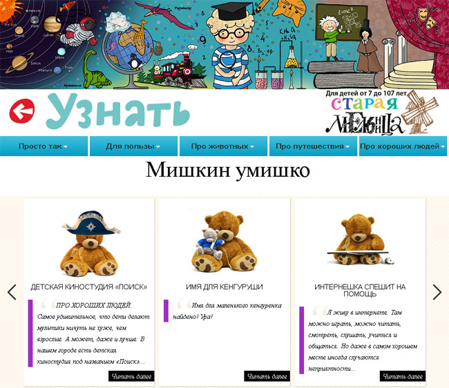Для Новосибирска и для многих других российских городов этот сайт — явление уникальное. Здесь ребенок может не только качественно и интересно развлечься, но и узнать что-то новое, научиться чему-то, а также проявить себя. Елена считает свой проект своеобразной площадкой, на которой собирается и аккумулируется творческий потенциал нашего города. Кстати, в качестве контента, например, в разделе «Почитать» используется главным образом творчество новосибирских авторов, таких как Анна Анисимова и Евгения Буторина. Их рассказы и небольшие повести приводят в восторг не только детей, но и родителей. Из известных российских и зарубежных детских авторов — Рената Муха из Израиля, Андрей Усачёв, Марина Москвина, Марина Бородинская, Артут Гиваргизов и другие.