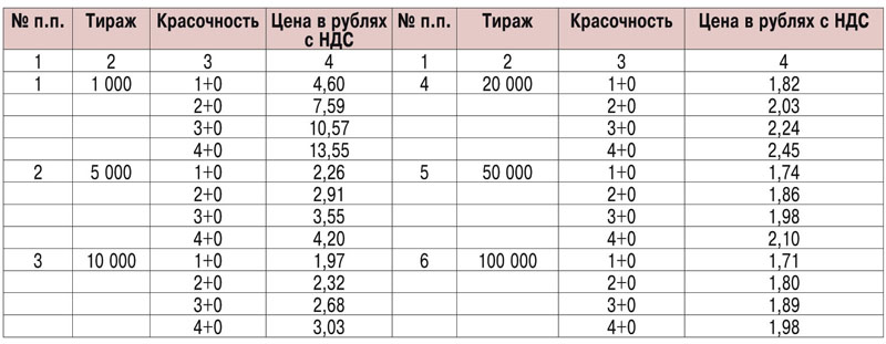 тираж до 10 000 экз. — 1,33 руб. с НДС за 1 экз.