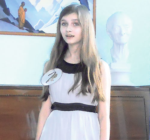 Ксении удалось передать глубину мысли стихотворения «Капитан» Петра Родина выразительным чтением в сопровождении слайдов и музыки. Интересный факт: автор этого стихотворения — наш земляк, выпускник средней школы № 43, написал это произведение в десятом классе.