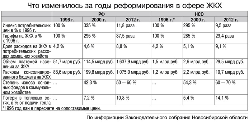 Так, объем платежей населения области за ЖКУ в 2000 году составлял 2,6 миллиарда рублей, а в 2012 году достиг 29,5 миллиарда рублей. Потери на теплосетях в 2000 году составляли 5,4 процента (в процентах от подачи тепла), в 2012 году — 14,1 процента.