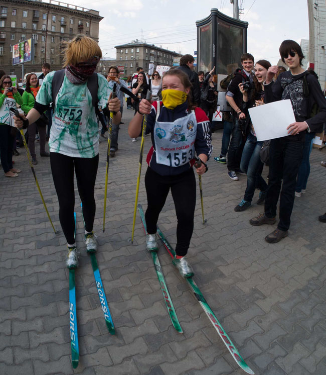 С интересом ожидалась и 11-я первомайская Монстрация, успевшая стать не просто символом Новосибирска, но и неким оппозиционным фетишем. Шествие молодых людей, пусть и со смешными, абсурдными, а порой и очень глубокомысленными лозунгами, в прежние годы его организаторы не всегда успевали оформить и согласовать должным образом. На этот раз согласование Монстрации с новой городской властью прошло без сучка и задоринки, более того — монстрантам впервые разрешили пройти прямо по Красному проспекту — от площади Калинина до площади Ленина, не петляя и не сворачивая.