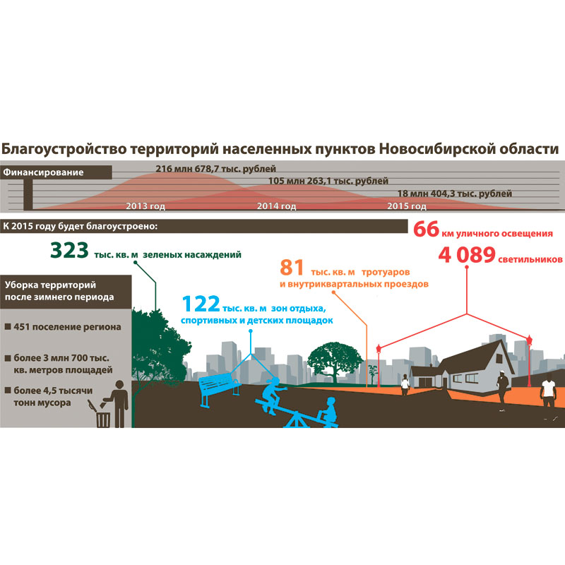 За счет дополнительных средств будет асфальтировано тротуарное покрытие мемориального комплекса «Монумент Славы», проведено благоустройство сквера возле ГПНТБ. Также в планах этого года — строительство фонтана в Троицком сквере в Ленинском районе.