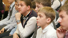 Актовый зал гимназии № 12 забит под завязку. Ученики рассаживаются по креслам и ждут прихода знаменитости, выключают сотовые телефоны и вспоминают, какие хотели задать вопросы. Всем было дано «домашнее задание» — подумать. Кто-то поискал в памяти личные истории про Крым, кто-то пролистал учебник…