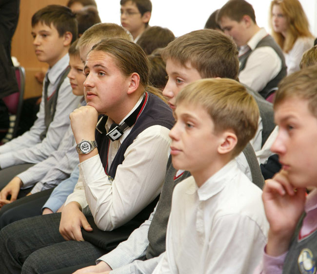 Выбор, кому идти на встречу, пал на 7-е классы, но в порыве «ревности» пришли и ребята постарше. Всем хотелось посмотреть на известного человека и послушать, о чем он будет говорить.