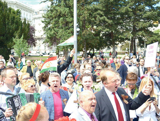Нам была доверена важная роль в торжественной церемонии возложения цветов и венков к памятнику Русскому солдату. Собравшиеся живо откликались на все наши номера, дружно подхватывая песни, кружились в вальсе или переходили в искрометный пляс. Уже через пятнадцать минут это уже было массовое пение всем известных песен и настоящее народное гуляние. Звонко раздавались слова «Калинки», мощным хором звучали «Катюша», «День Победы», «Смуглянка».