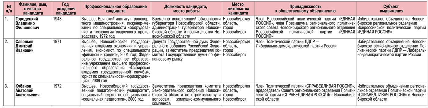 01:25 / 09.08.2014 / Документы Сведения о зарегистрированных кандидатах Сведения о зарегистрированных кандидатах на должность губернатора Новосибирской области Фотографии статьи Сведения о зарегистрированных кандидатах на должность губернатора Новосибирской области АКТУАЛЬНО Зачем рыть, чтобы отложить на попозже? Экономика Опыт, достойный масштабирования в стране Общество Почём землица для агрария Экономика