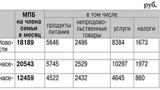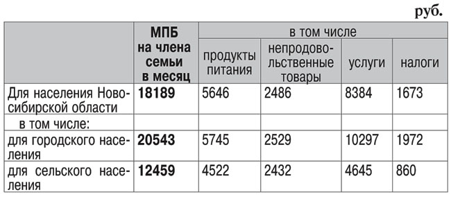 По расчетам министерства труда, занятости и трудовых ресурсов Новосибирской области, минимальный потребительский бюджет на одного члена семьи, определяемый в соответствии с указом Президента Российской Федерации от 2 марта 1992 года № 210 «О системе минимальных потребительских бюджетов населения Российской Федерации», на 1 ноября 2014 года составил (см. Таблицу 2).