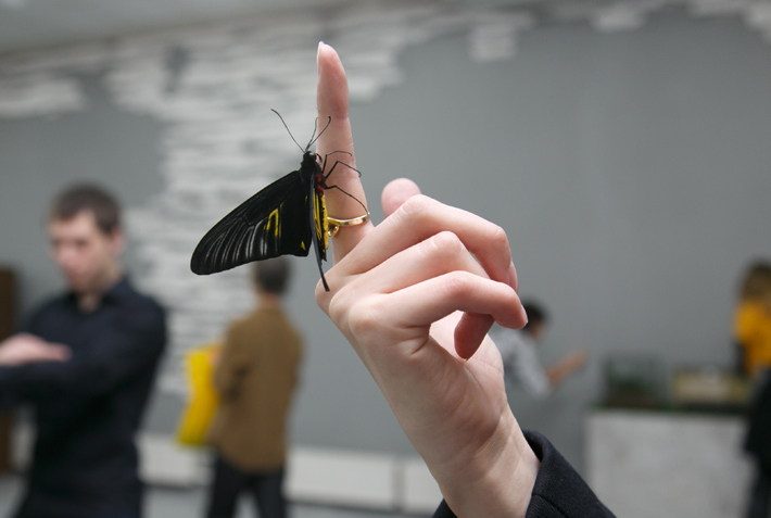 «Куколку мы привезли из Таиланда. Представьте, размах ее крыльев составляет тридцать сантиметров, — говорит директор нового выставочного проекта Юлия Сергеева. — Но проживет она недолго — всего три дня и за свою недолгую жизнь ничего не попробует из еды».