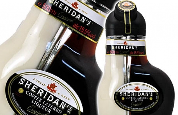 СПРАВКА. Sheridan’s -- двухцветный ирландский ликёр на основе виски в оригинальной двухсекционной бутылке, в одной части которой находится белая ванильно-сливочная составляющая, во второй — тёмная кофейно-шоколадная.