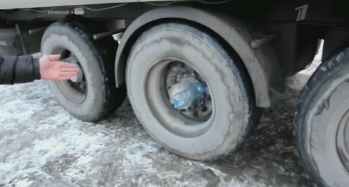 «Потому что холодно, другие отверстия в этом диске могут замерзнуть и вставляют такую бутылку, чтобы хоть одно отверстие было доступно, чтобы в случае какой-нибудь надобности можно было с помощью него снимать колесо, что-то ремонтировать, поправлять, — сказал Тимофеев. — В дальнейшем одного отверстия будет достаточно, чтобы поправить ситуацию с колесом».
