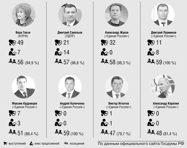 Славно поработал счетчик для депутата от ЛДПР Дмитрия Савельева: по количеству внесенных в Госдуму законопроектов он лидер среди парламентариев от Новосибирской области, к тому же 21 раз выступил на заседаниях парламента. И хотя Савельев является первым заместителем председателя комитета ГД по безопасности и противодействию коррупции, его предложения касались только социальных вопросов и ЖКХ.