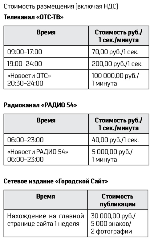 Материалы представляются по адресу ул. Римского-Корсакова, д. 22, оф. 226, с 09:00 до 18:00 (перерыв 13:00–14:00) администратору рекламно-коммерческой службы, тел. (383) 347-49-39.