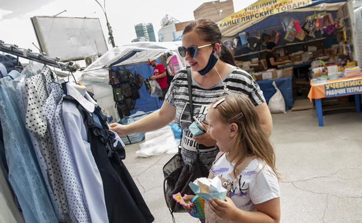 — Двое школьников, в этом году они пойдут во второй и третий класс, — уточняет жена. — Но мы пока просто ходим, смотрим, прицениваемся. Часть необходимых вещей для школы будем покупать через Интернет, часть здесь, на ярмарке. Так дешевле, чем в магазине.