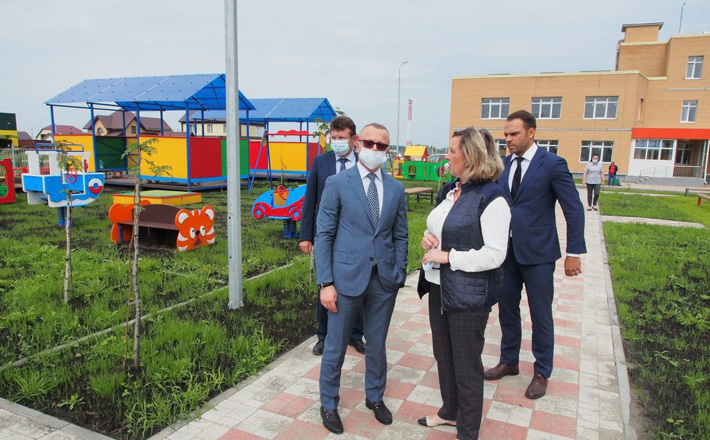 В Чулымском районе по нацпроекту «Демография» возвели новый детский сад на 200 мест, готовность объекта проверил первый заместитель губернатора Новосибирской области Юрий Петухов. Фото: nso.ru