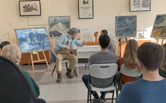 Гостей центра ожидал иммерсивный театр, это когда актеры взаимодействуют со зрителями. Рассказчик — персонаж, знающий магические истории о существах пограничного мира: кикиморах, леших, банниках, домовых. Честно говоря, вспомнилось детство в деревне у бабушки, дремучие и холодящие сердце страшилки: в полночь в баню ни ногой, ведь с этого времени в ней моется хозяин и тревожить его нельзя. Если слышишь лай ночью, значит, ведьма на метле летит на шабаш.