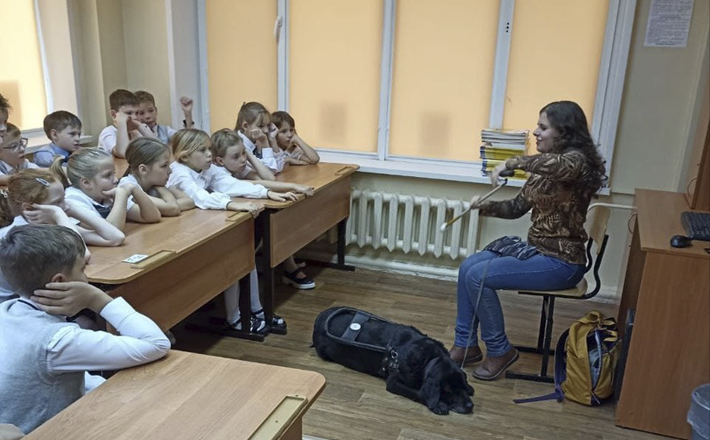 Участница конкурса «Профессиональное завтра», студентка первого курса магистратуры Института социальных технологий НГТУ НЭТИ Светлана Лапатская и ее собака-поводырь Азалия, или просто Залька. Фото: vk.com