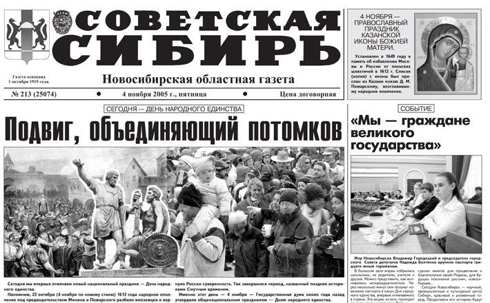 И в наше время видится совершенно не случайным, что православные в этот же день, 4 ноября, прославляют Казанскую икону Божией Матери, которой россияне всегда возносили молитвы в самые непростые времена. Единство и правда — наша могучая сила. В такой многонациональной и многоконфессиональной стране, как наша Родина, сохранение согласия между гражданами, их равенство и дружба — залог победы в любых начинаниях. В мирных и ратных.