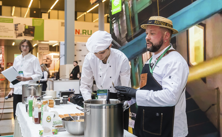 И вообще никакого мяса продегустировать не пришлось. Как и ожидалось, здоровое питание по российским традиционным меркам — это в первую очередь крупы. Так утверждает приглашенный из Ростова-на-Дону шеф-повар Максим Артюхов.