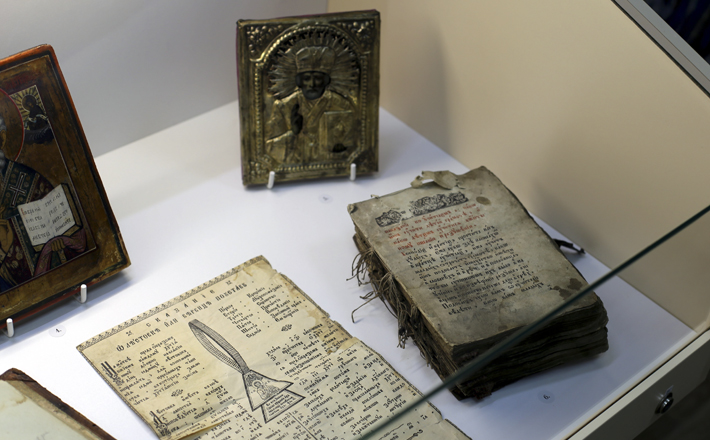 Что касается тематического зала, то коллекция икон в фондах музея института насчитывает несколько сотен предметов: большое собрание старообрядческих литых; писаные деревянные.