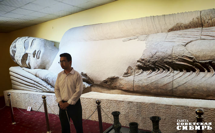 Сегодня музей является настоящим местом паломничества — буддисты многих стран мира приезжают к «Будде в нирване». Это почти тринадцатиметровая статуя весом 5,5 тонн из глины, которая считается самым крупным древним памятником буддизма в мире. Он был открыт в монастыре Аджинатеппа недалеко от города Бохтар на юге Таджикистана. Функционировал этот монастырь около 1500 лет назад.