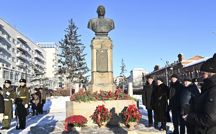 Церемония 9 декабря началась с возложения цветов к бюсту первого трижды Героя Советского Союза, маршала авиации Александра Ивановича Покрышкина. Фото: nso.ru