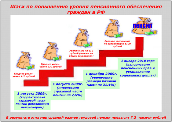 — Повышение пенсионного обеспечения граждан Российской Федерации является на сегодняшний день одним из главных приоритетов государственной социальной политики, и, несмотря на тяжелые экономические условия, государство гарантирует выполнение всех социальных обязательств перед нынешними и будущими пенсионерами. К тому же пенсионные органы намерены предпринимать всевозможные меры для сбора страховых взносов в полном объеме, так как с 1 января 2010 года функции администрирования страховых взносов на обязательное пенсионное страхование и обязательное медицинское страхование переданы ПФР.