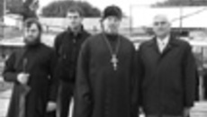 Руководитель миссионерского отдела Новосибирской епархии Константин Работа сразу попадает в объятия журналистов.